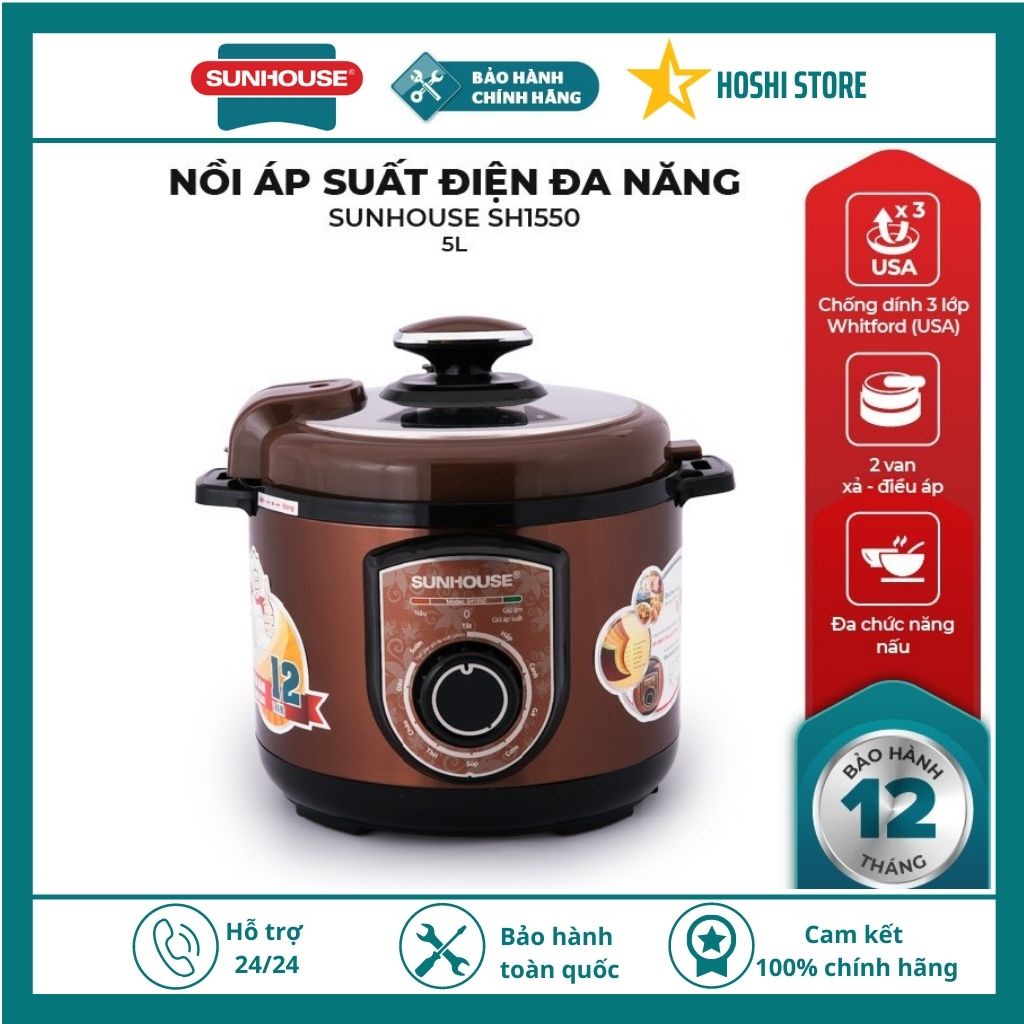 [Mã ELHADEV giảm 4% đơn 300K] Nồi áp suất điện đa năng SUNHOUSE SHD1550 - Bảo Hành Chính Hãng 12 Tháng trên toàn quốc