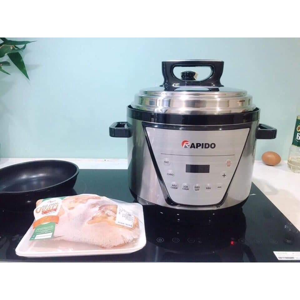 Nồi áp suất điện đa năng Rapido RPC900-D tự động xả áp, 6 chức năng nấu (5L, 900W - Hàng chính hãng)Bảo hành chính hãng công ty 12 tháng sử dụng