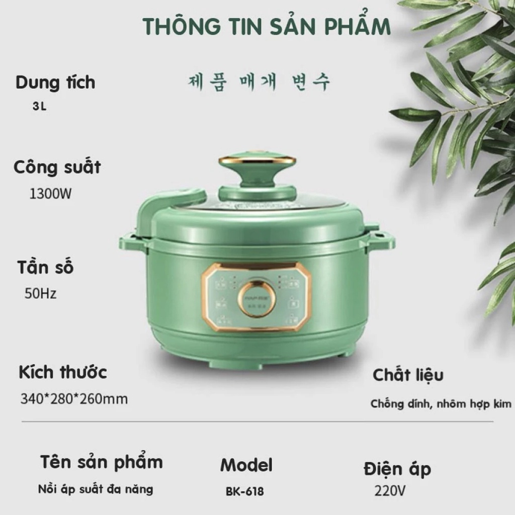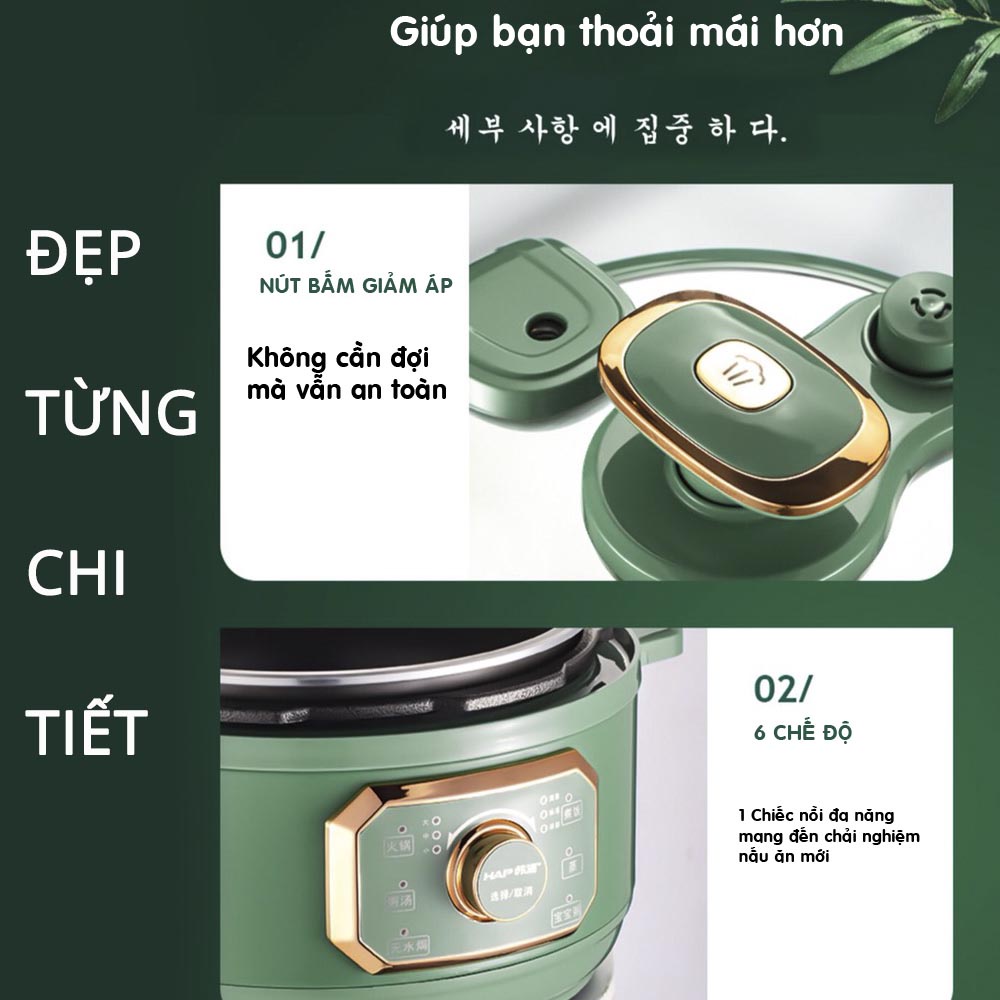 Nồi cài đặt trước 6 chế độ với thời gian và áp suất tự động, khi chín tự ngắt