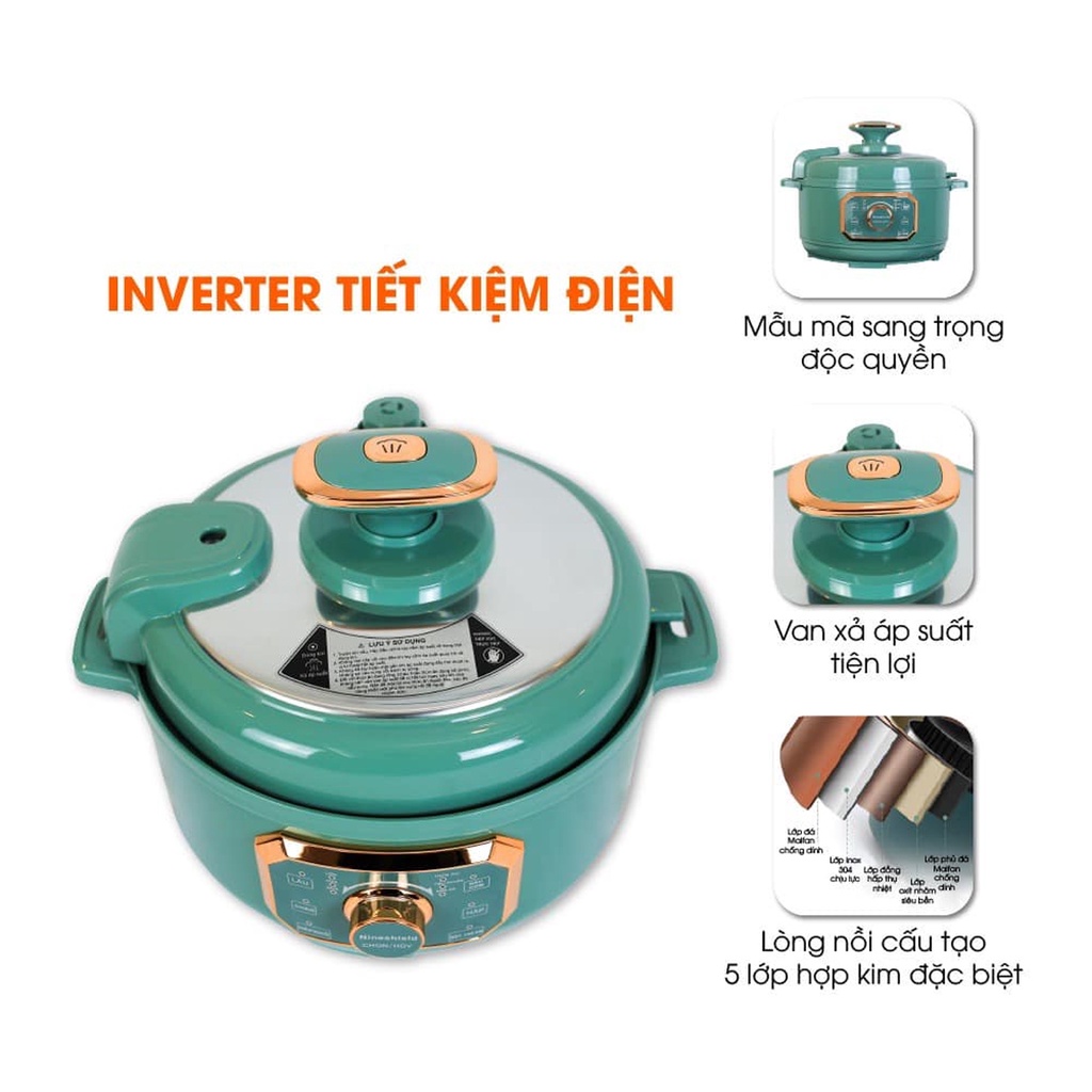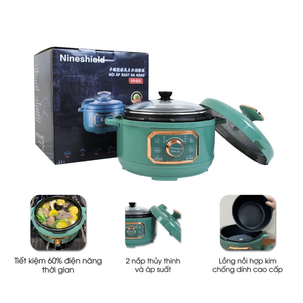 - Tên sản phẩm: Nồi áp suất điện đa năng NineShield 4L, Điều khiển điện tử, 6 Chế độ nấu tự động – Nội địa Trung- Sản phẩm: Nồi áp suất thông minh NineShield 6 trong 1 - Sản xuất theo công nghệ tiên tiến của Nhật Bản