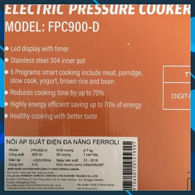 NỒI ÁP SUẤT ĐIỆN ĐA NĂNG RAPIDO 5L-900W Chính hãng bảo hành 12 thángLô cũ dập Logo tập đoàn Ferroli hàng quà tặng.