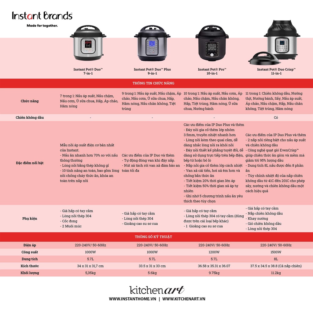 ⚠️ Lưu ý: Chất lượng Instant Pot là đồng đều trên toàn cầu, chỉ khác biệt tại một số chi tiết như chấu dây cắm, điện áp, ngôn ngữ bảng điều khiển, sách hướng dẫn sử dụng...Instant Pot® DUO™ PLUS