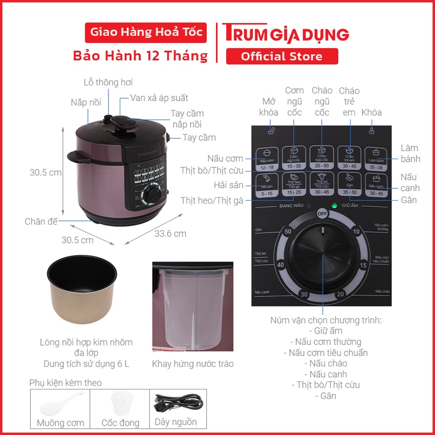 Thương hiệu: Sunhouse | Xem thêm các sản phẩm Nồi áp suất của SunhouseMô tả ngắn