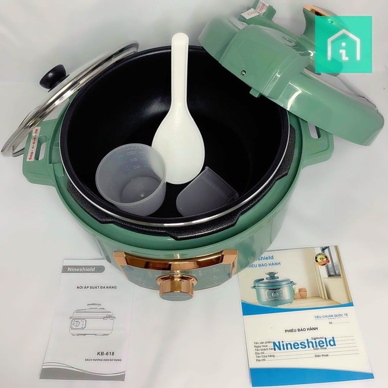 Nồi áp suất điện đa năng Nineshield 4L KB618, Nồi hầm cháo cho bé thông minh 6 chức năng bản Tiếng Việt