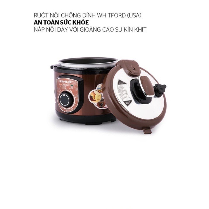 Nồi áp suất điện SUNHOUSE 5L màu cà phê SHD1550BỀN CHẮC – AN TOÀN – TIỆN DỤNG