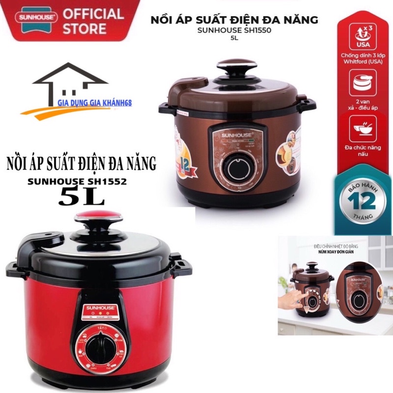 Nồi áp suất điện đa năng SUNHOUSE 5lit SHD1550 , Nồi áp suất điện Sunhouse SHD1552 HÀNG CHÍNH HÃNG