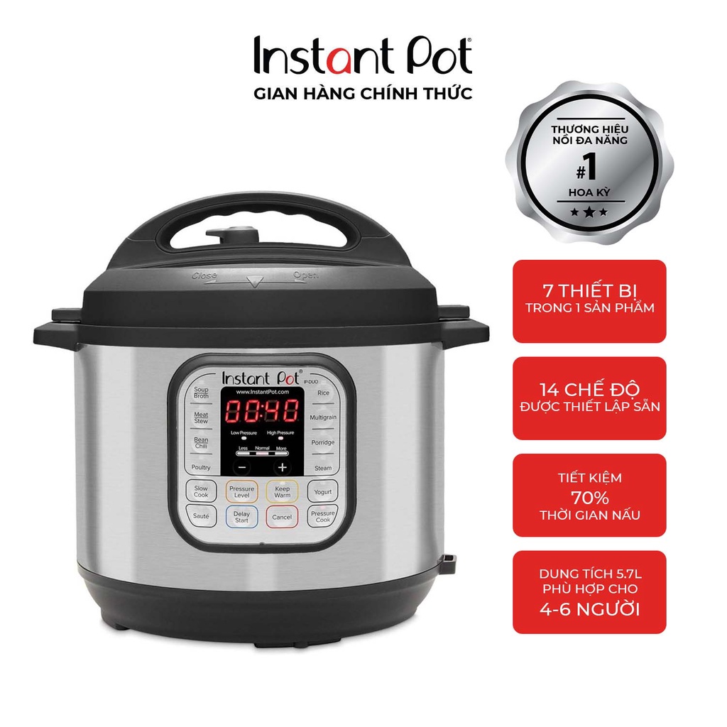 [Mã ELHADEV giảm 4% đơn 300K] Nồi áp suất điện đa năng Instant Pot® Duo™ 7-in-1, 5.7L, Bảo hành chính hãng 12 tháng
