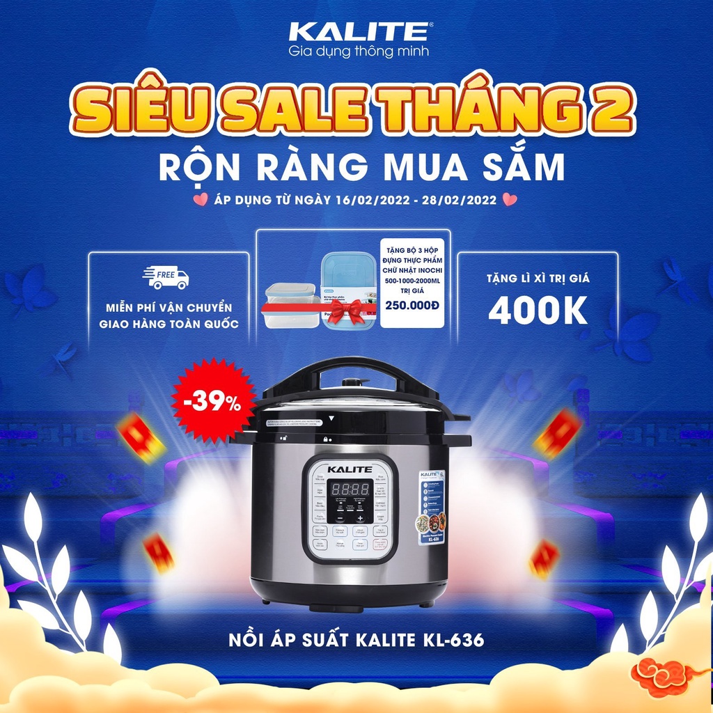 Thiết Bị Điện Gia Dụng > Đồ gia dụng nhà bếp > Nồi áp suất || Nồi áp suất điện đa năng Kalite KL636, dung tích 6L, 950W có chức năng hẹn giờ tiện dụng, đa năng [BẢO HÀNH 24 THÁNG]Còn hàng
