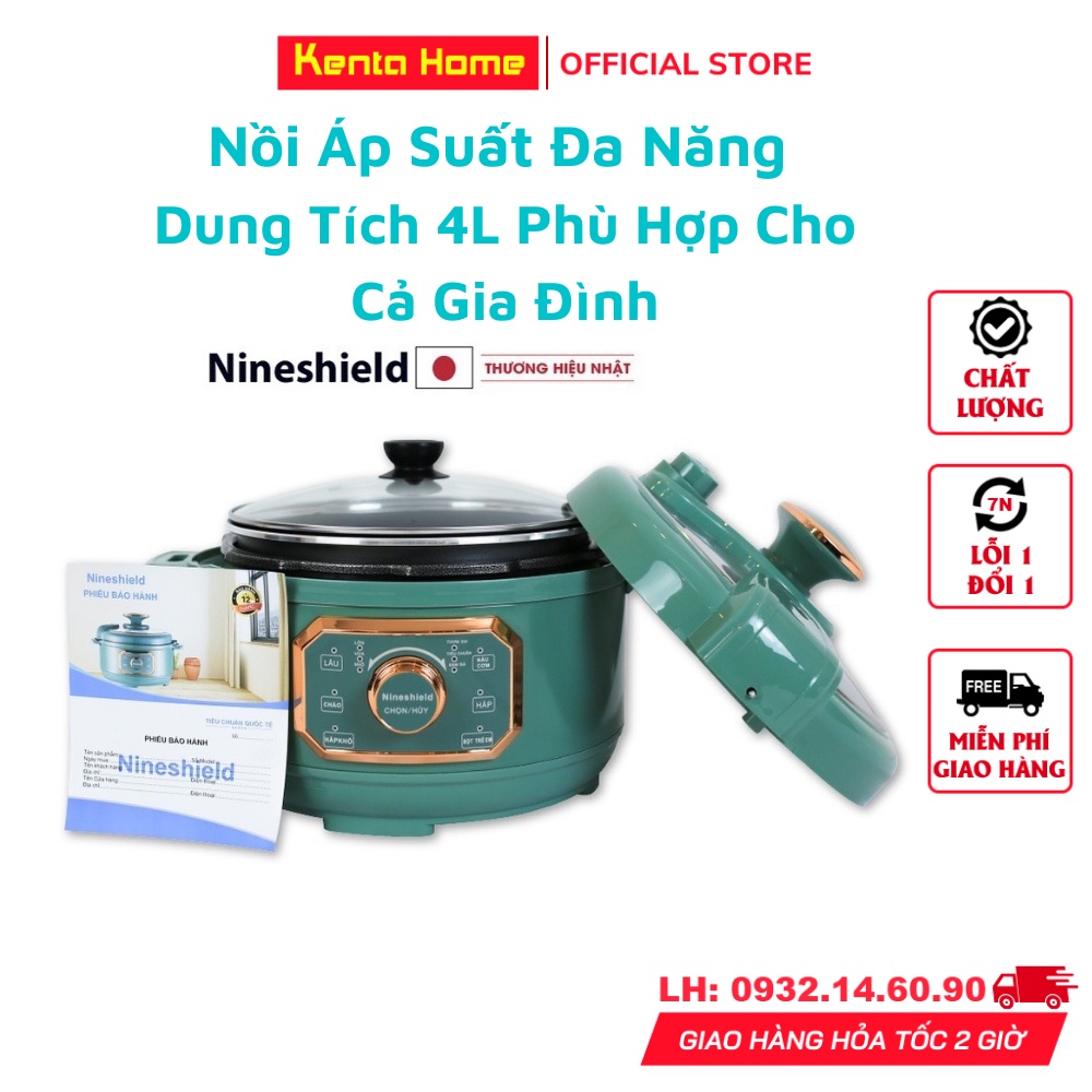 Nồi áp suất điện đa năng Nineshield chính hãng dung tích 4L, nấu lẩu, nấu cháo, nấu cơm, hầm xương, chiên xào, BH 1 Năm