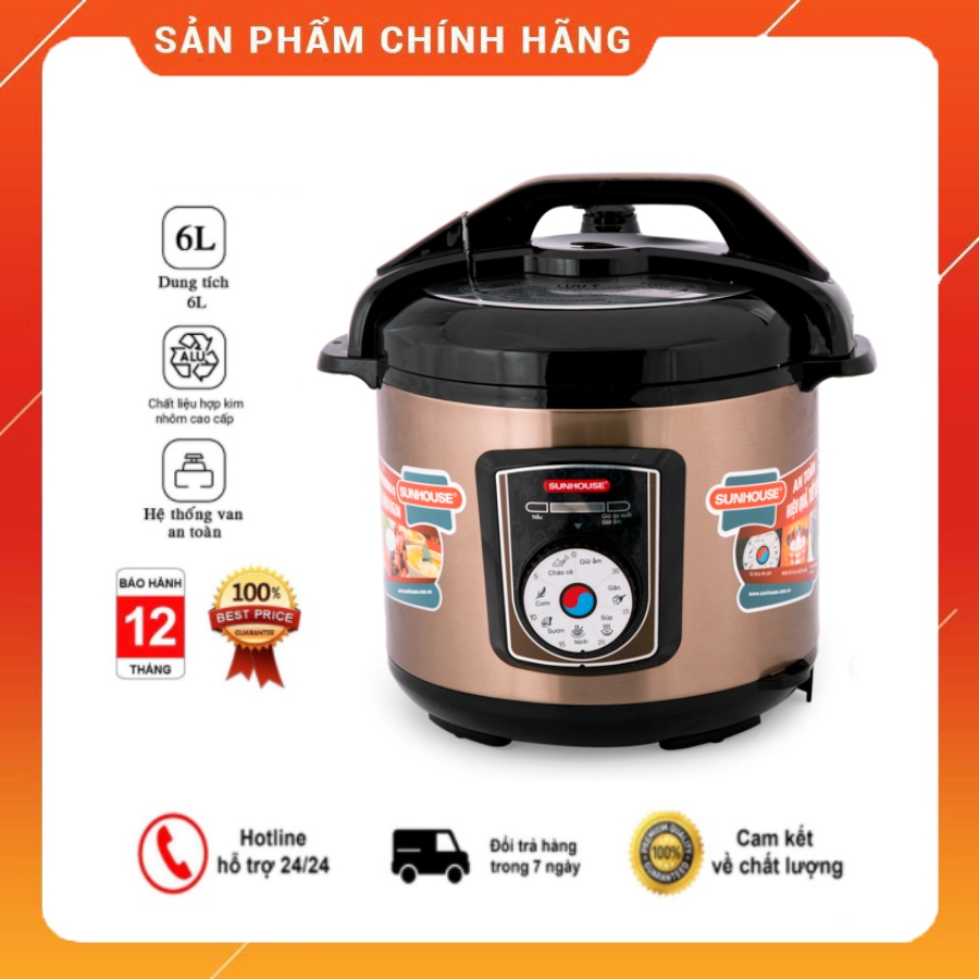 Giới thiệu Nồi Áp Suất Điện Đa Năng Sunhouse SHD1756 Dung Tích Lớn 6L, Thiết Kế Vung Liền Chắc Chắn, Chống Dính Tốt, BH 12 Tháng