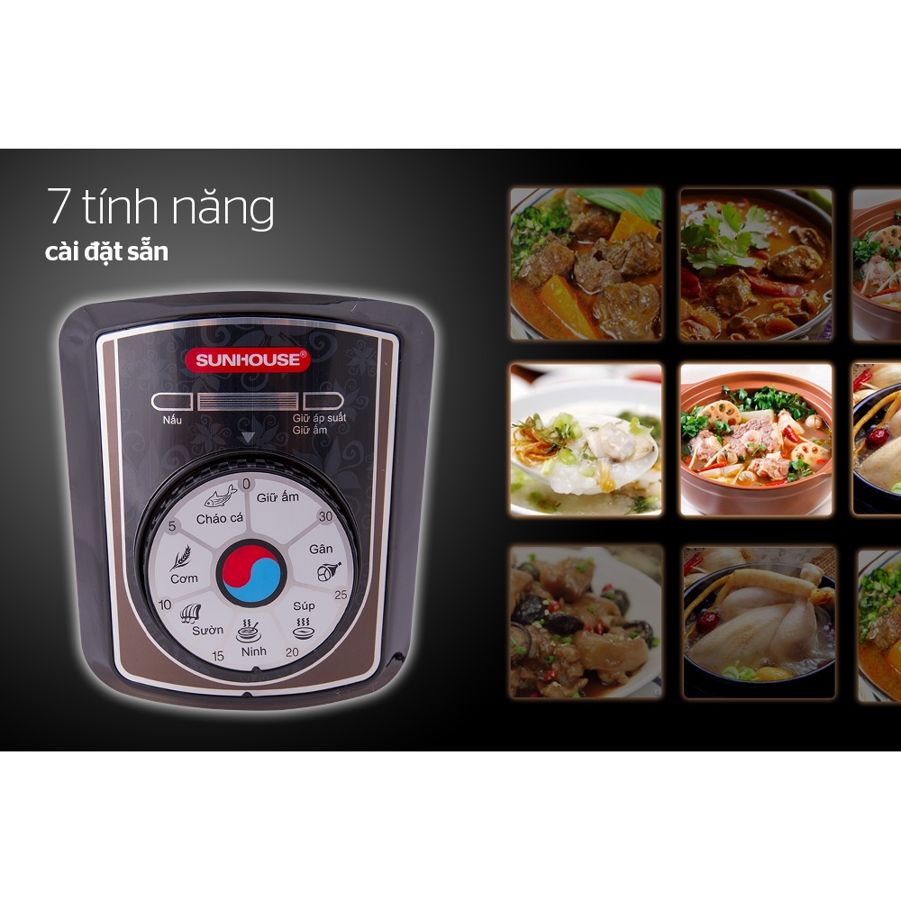 💥Nồi áp suất đa năng Sunhouse SHD1756 với dung tích 6 lít, hoạt động với công suất mạnh mẽ giúp tiết kiệm tối đa thời gian và điện năng, đa chức năng: Nấu, hầm, om… không làm mất dinh dưỡng của thực phẩm.