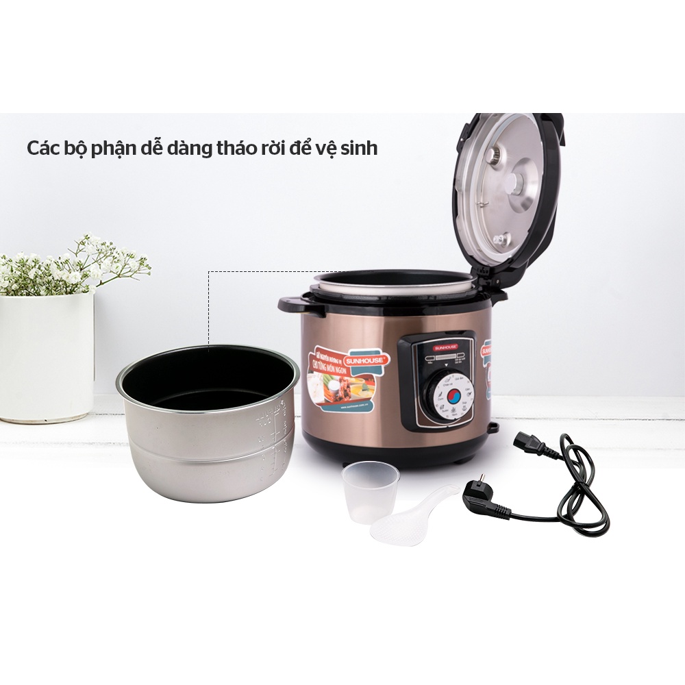 Nồi Áp Suất Điện Đa Năng Sunhouse SHD1756 Dung Tích Lớn 6L, Thiết Kế Vung Liền Chắc Chắn, Chống Dính Tốt, BH 12 Tháng