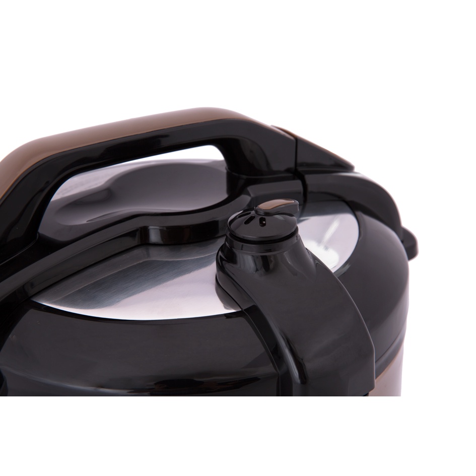 💥Thiết kế nắm liền thân mới lạ, độc đáo, nồi áp suất điện thiết kế với phần nắp nồi khít hoàn toàn với thân nồi để giữ lại hơi nước trong nồi. Khi áp suất trong nồi tăng lên và hơi nước trong nồi sẽ tạo áp lực lên bề mặt của nước trong nồi, khiến cho nước không thể biến thành hơi nước nữa. Do vậy, nhiệt không bị mất ra bên ngoài, nhiệt độ tăng hơn 100oC và giúp thức ăn chín nhanh hơn.