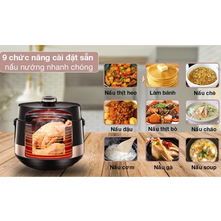 - Chức năng: Nấu cơm, giữ ấm, giữ áp suất, làm nóng, hầm, ninh thực phẩm