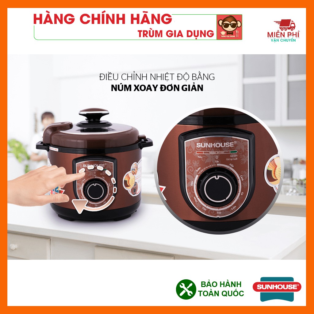 - Nồi áp suất điện Sunhouse SHD-1552 5.0 lít thương hiệu Sunhouse uy tín, chất lượng, đa chức năng có thể nấu được nhiều món ăn, là sự lựa chọn hàng đầu của các bà nội trợ.