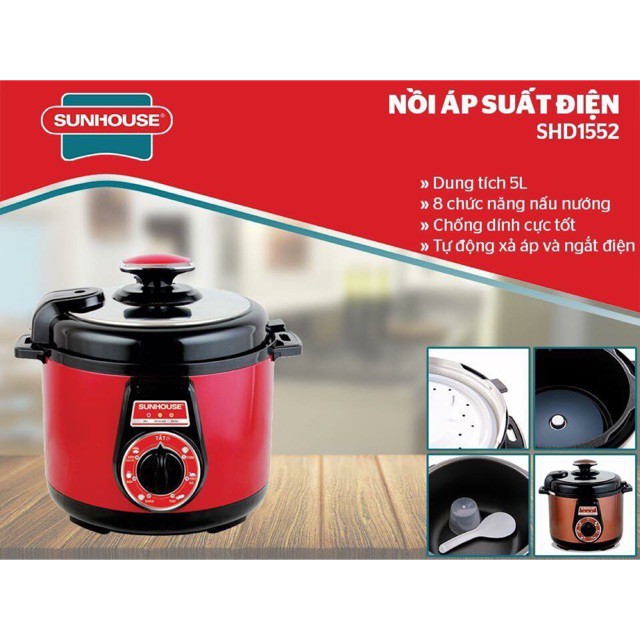 THÔNG SỐ KỸ THUẬT: Nồi áp suất điện đa năng SUNHOUSE SH1552- Màu sắc: Đỏ