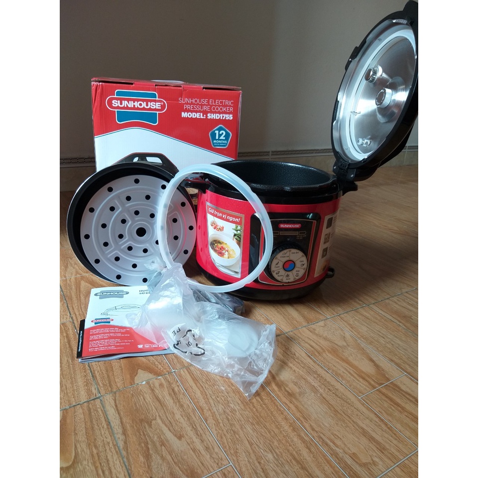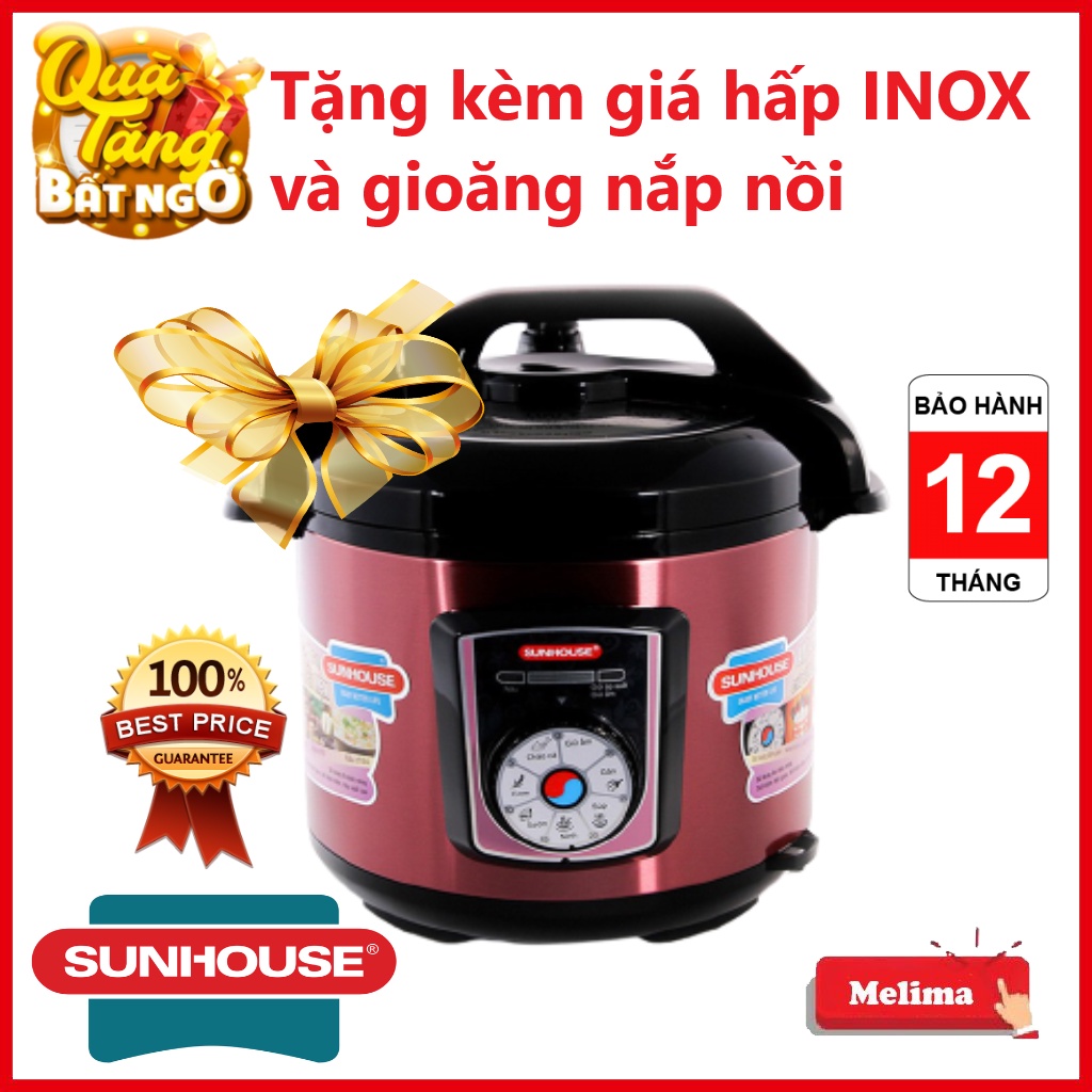 Nồi áp suất điện Đa Năng Sunhouse SHD1755, Dung tích 5L, Tặng kèm giá hấp và gioăng nắp nồi, Bảo hành 12 tháng, Melima✅ Cam kết từ Melima