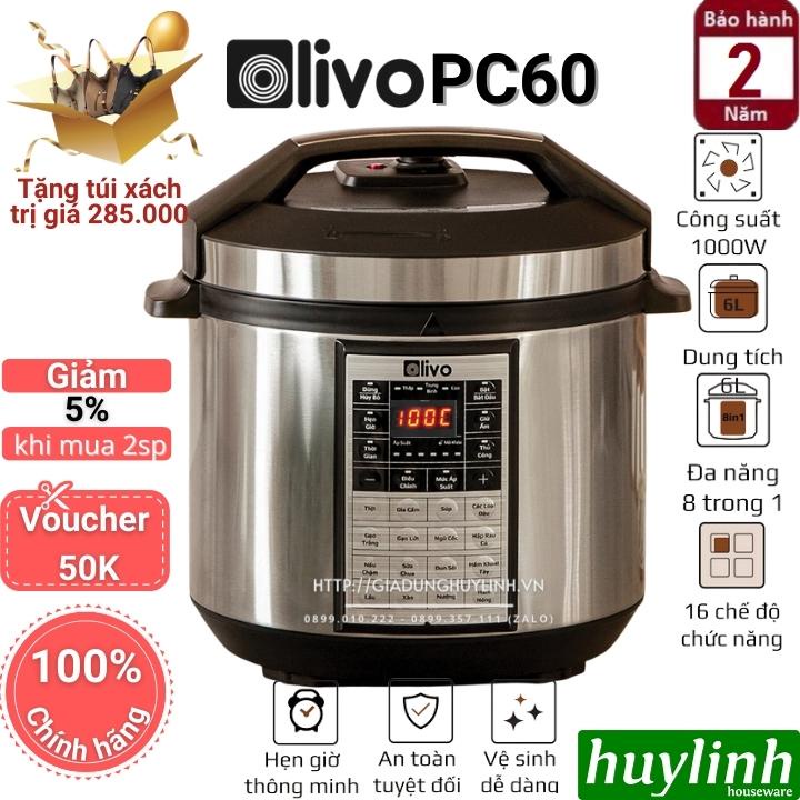 Thiết Bị Điện Gia Dụng > Đồ gia dụng nhà bếp > Nồi áp suất || [Mã 273ELHA100K0 hoàn 7% đơn 500K] Nồi áp suất điện đa năng Olivo PC60 - 6 lít - 1000W - 16 chức năngCòn hàng