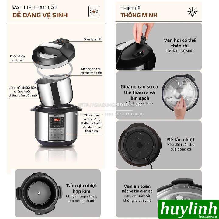 - Van áp suất được kết hợp cùng cảm biến điện tử, đảm bảo áp suất trong nồi luôn ở mức an toàn