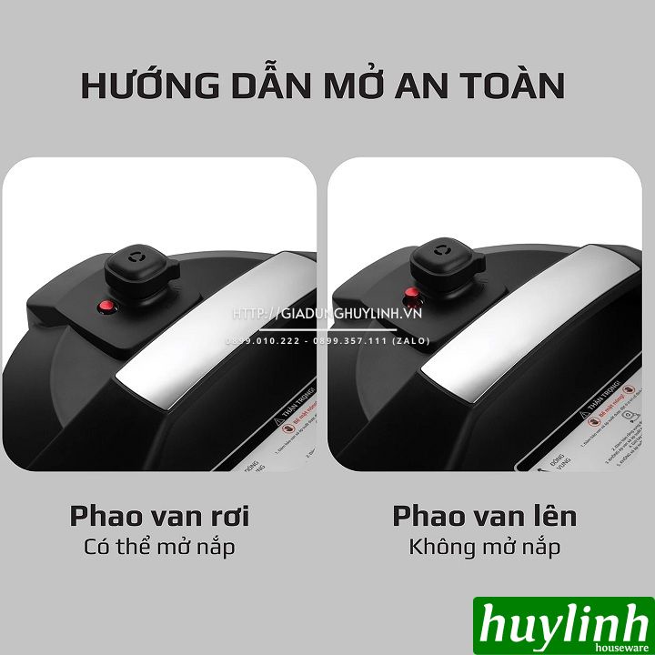 - Van áp suất an toàn tuyệt đối, giúp giữ áp suất tốt và xả áp suất nhanh chóng sau khi sử dụng xong.