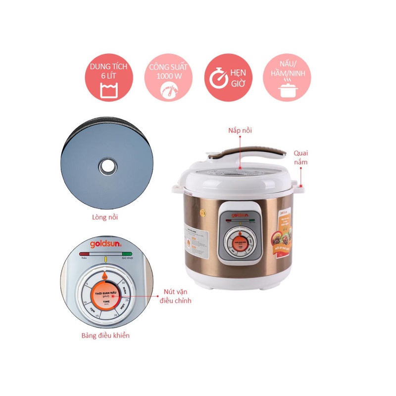 - Tên sản phẩm: Nồi áp suất điện Goldsun EP-GHP60G