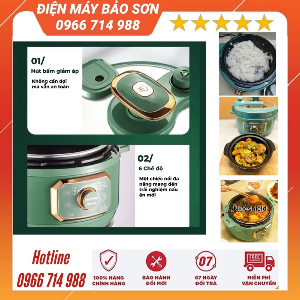 Nồi Áp Suất Điện Hầm Nấu Đa Năng Nineshield Chính Hãng Dung Tích 5 Lít 6 Chế Độ Nấu Bảo Hành 12 ThángĐẶC ĐIỂM SẢN PHẨM: