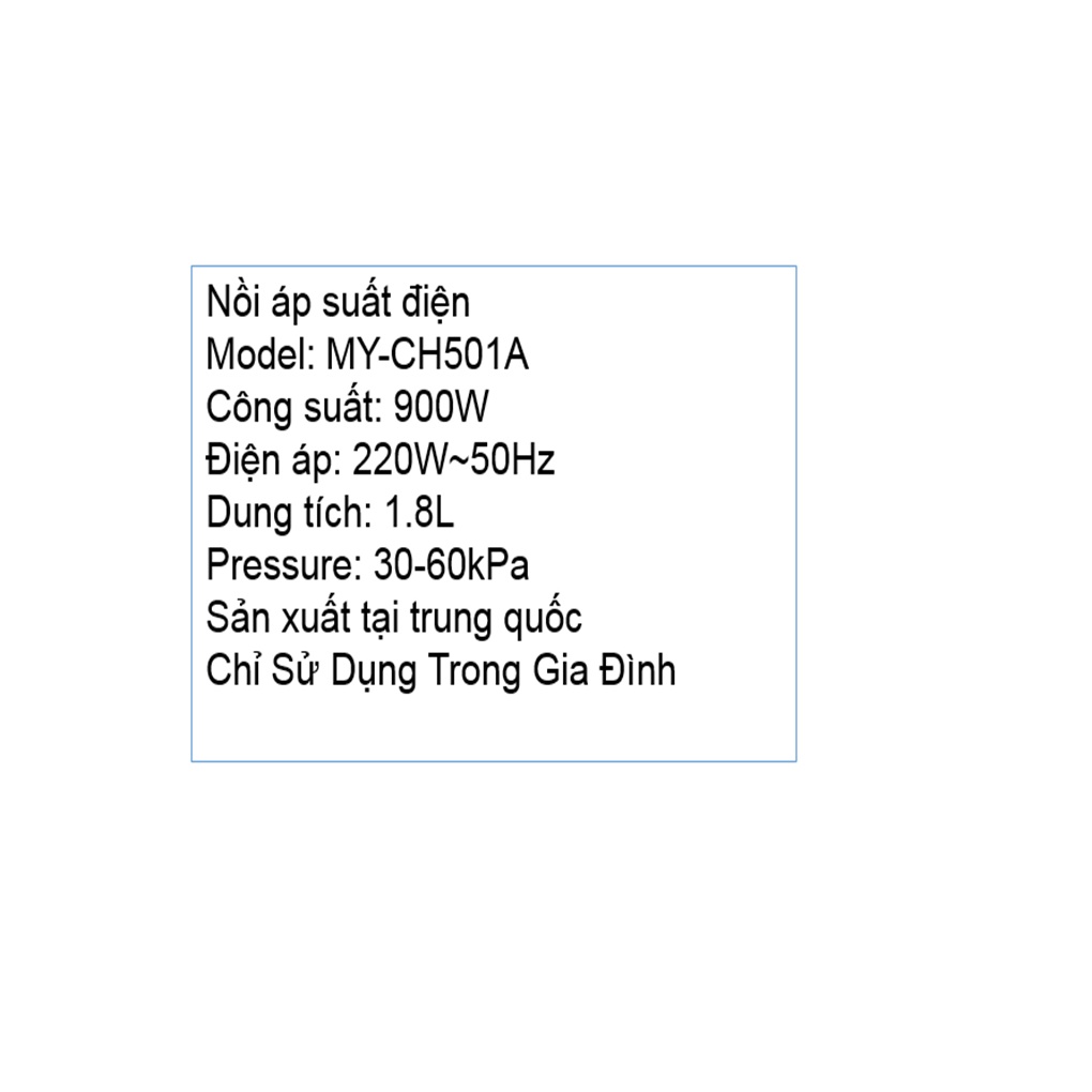 Thiết Bị Điện Gia Dụng > Đồ gia dụng nhà bếp > Nồi áp suất || [Mã ELMALL150 giảm 8% đơn 500K] Nồi áp suất điện Midea MY-CH501A 5 lítCòn hàng