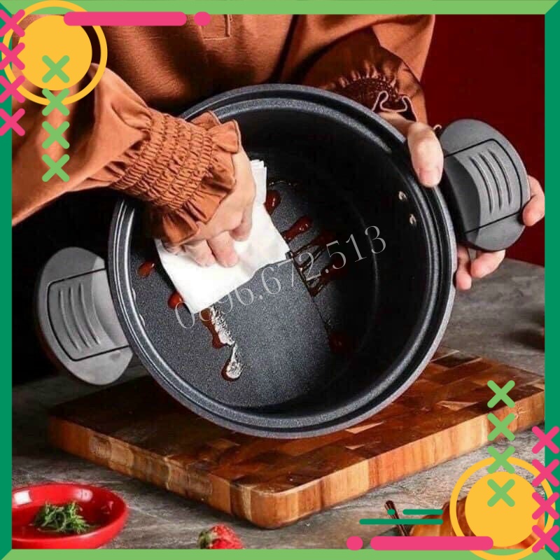 - Lòng nồi rộng, sáng, mịn, dày, chống cháy đảm bảo thích hợp tất cả món ăn khó chế biến nhất.