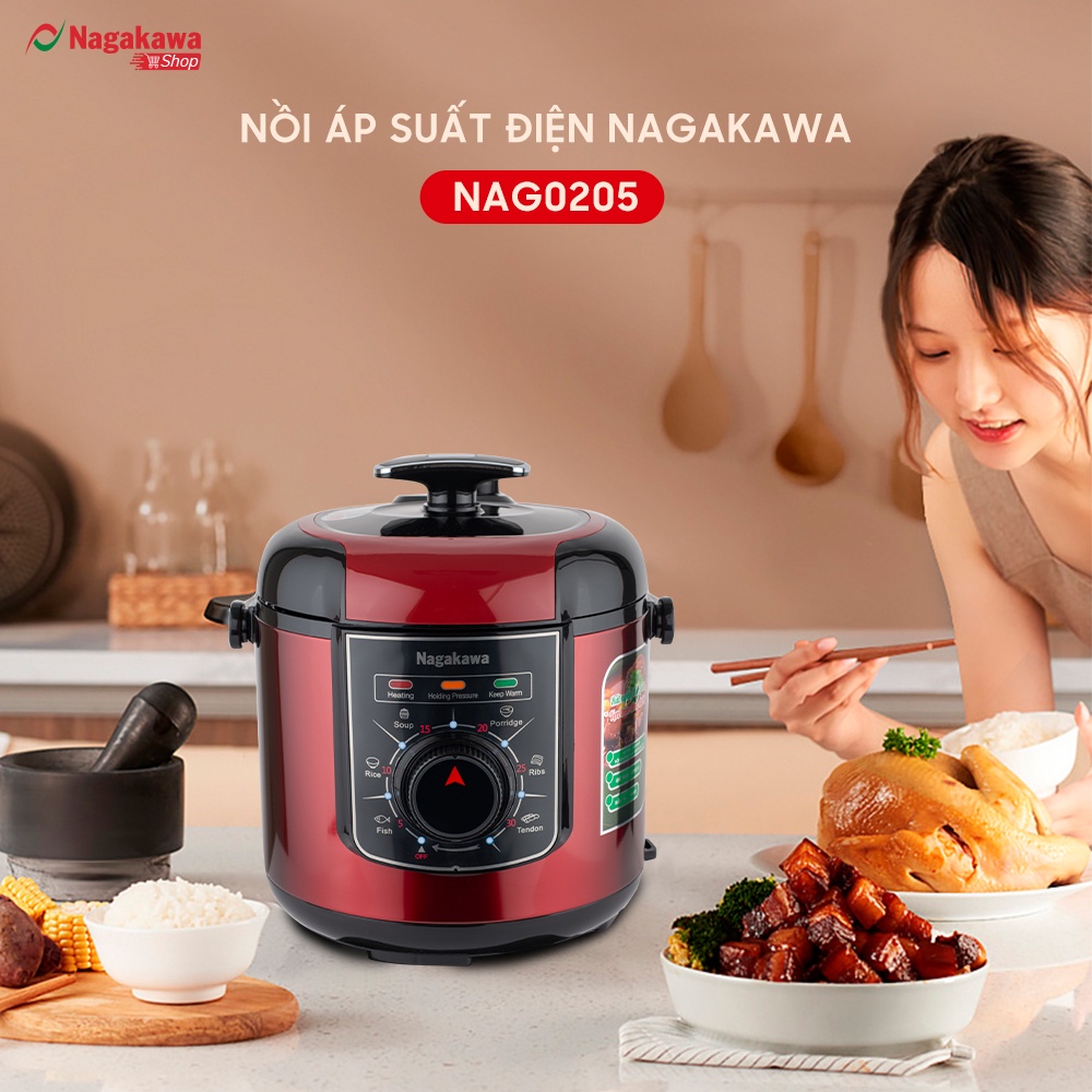 Giới thiệu Nồi Áp Suất Điện, Nồi Hầm 6L Nagakawa Hàng Chính Hãng Bảo Hành 12 Tháng mã NAG0205