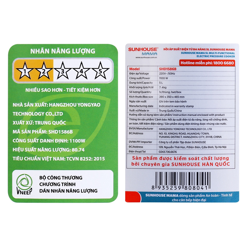 [Mã ELHADEV giảm 4% đơn 300K] Nồi áp suất điện Sunhouse Mama SHD1586B 5 lít