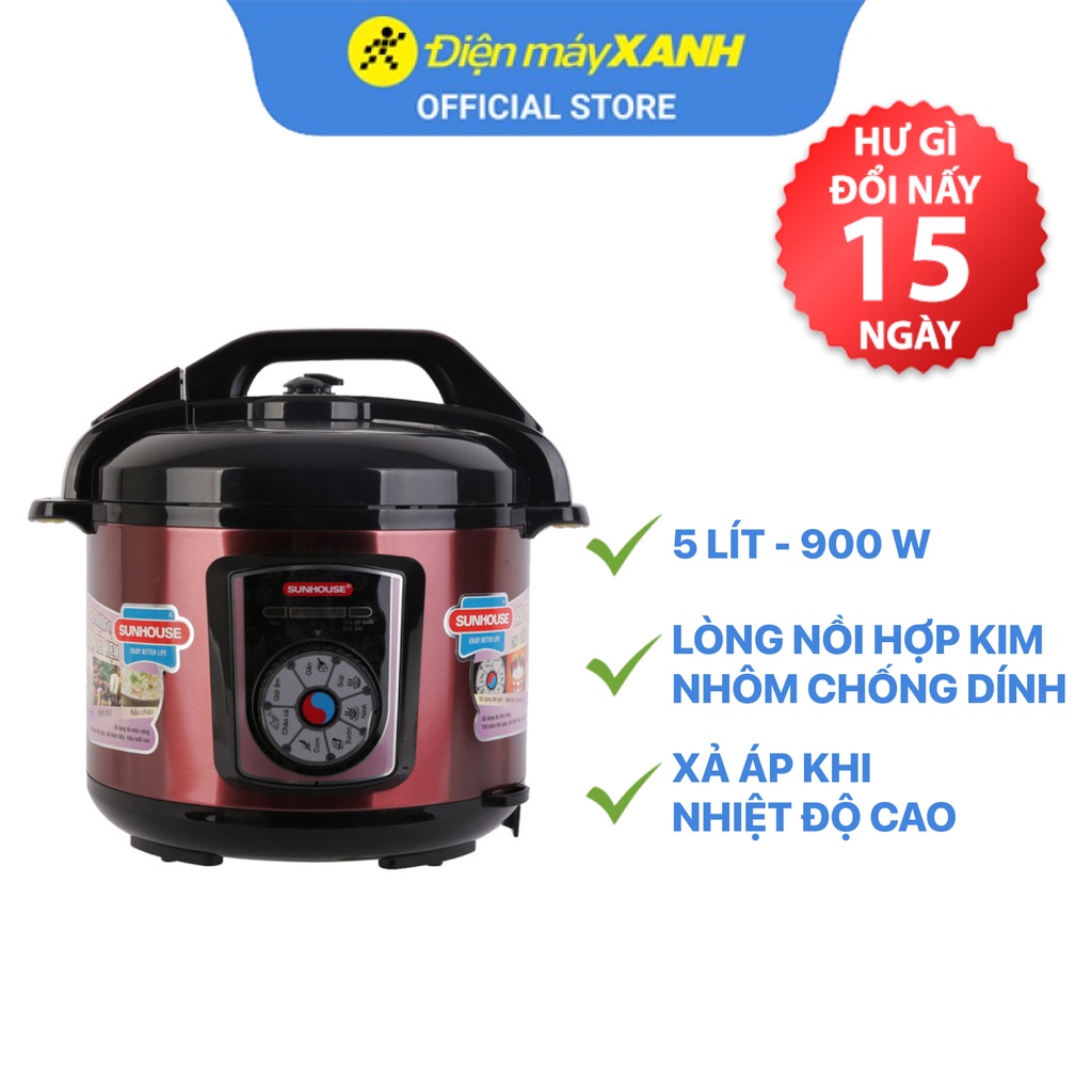 Thiết Bị Điện Gia Dụng > Đồ gia dụng nhà bếp > Nồi áp suất || [Mã ELMALL150 giảm 8% đơn 500K] Nồi áp suất điện Sunhouse SHD1755 5 lítCòn hàng