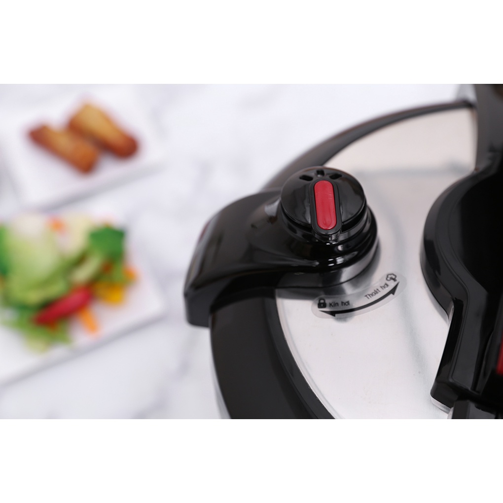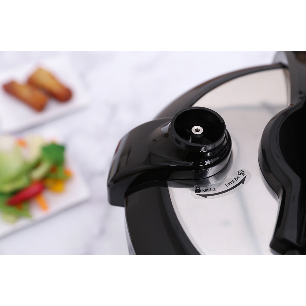 Van khóa an toàn ngăn không cho người dùng mở nắp nồi khi bên trong còn áp suất giúp bảo vệ người dùng, tránh các nguy cơ cháy nổ tối đa.
