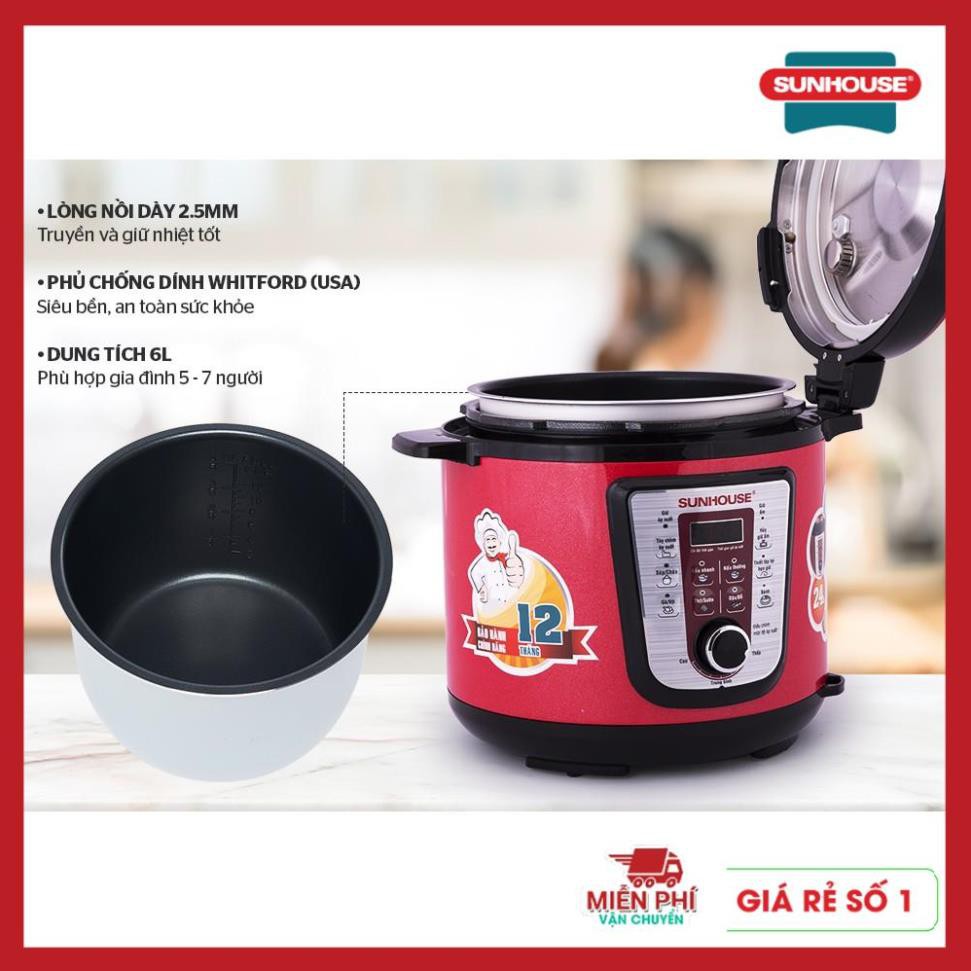 ✔️✔️✔️ ĐẶC ĐIỂM NỔI BẬT Nồi áp suất điện tử đa năng 6lit SUNHOUSE SHD1767 đỏ