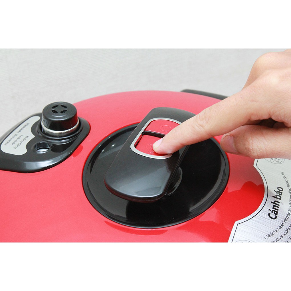 - Sau khi nấu xong, để mở nắp người dùng chỉ cần nhấn nút trên nắp nồi cho xả áp và vặn nắp mở nồi.