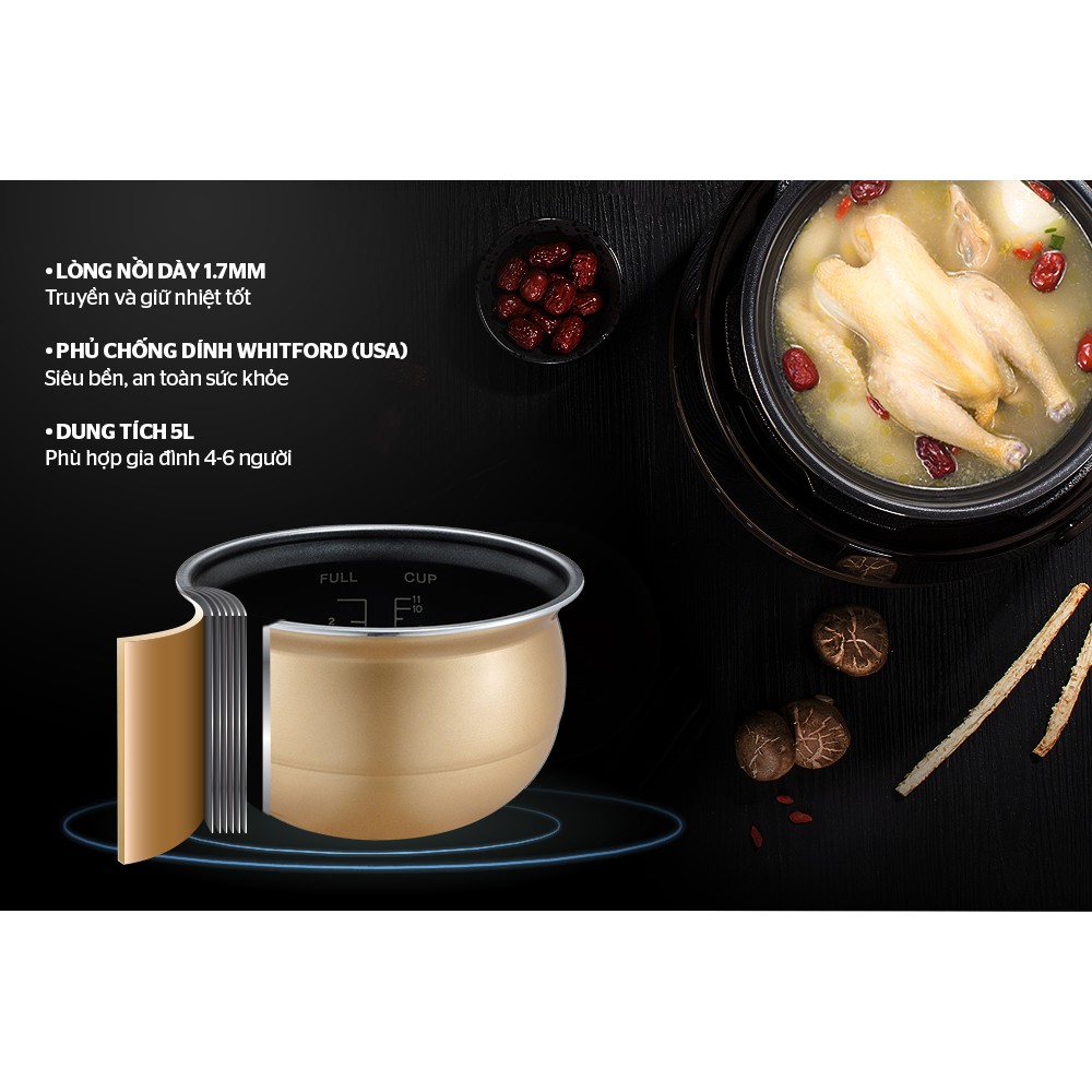 Chế độ/Chức năng Đa chức năng nấu nướng: hầm gân, súp, cháo, gà, canh, nấu cơm, giữ ấm thực phẩm…