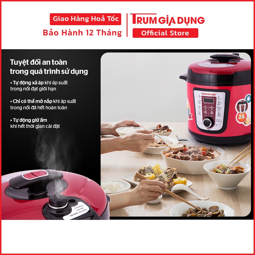 Nồi áp suất điện tử đa năng 6L Sunhouse SHD1767, nồi hầm Sunhouse phím bấm điện tử, bảo hành 12 tháng.