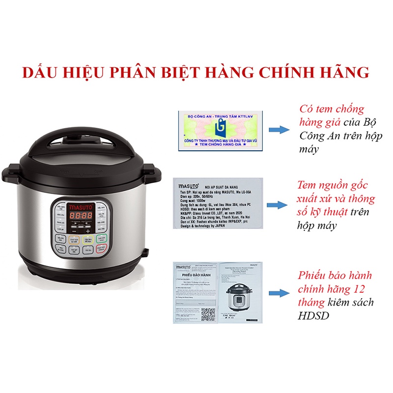 - Nồi nấu áp suất đa năng Masuto kết hợp 7 thiết bị trong 1 bao gồm: nồi áp suất, nồi nấu chậm, nồi cơm điện, nồi hấp, chảo xào, máy làm sữa chua và giữ ấm.. Nấu nhanh hơn đến 70%