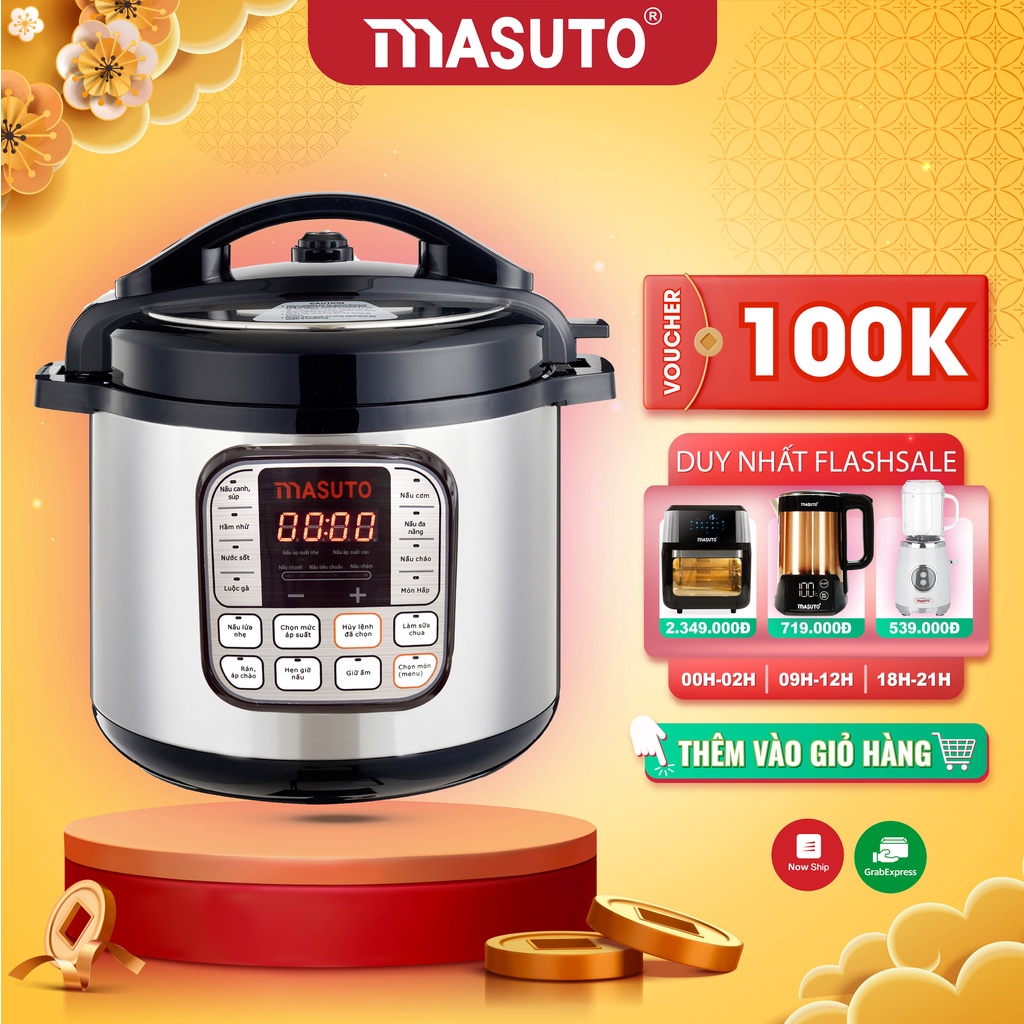 Nồi áp suất điện Masuto 6L van xả đôi tự động điều khiển cảm ứng 1 chạm phiên bản nâng cấp 2022 VOUCHER 100K