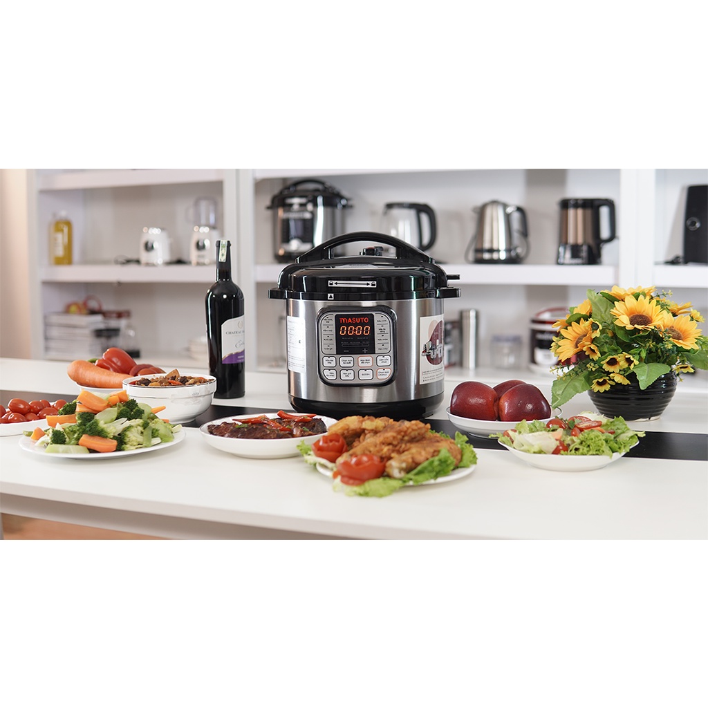 Nồi áp suất điện tử đa năng Masuto CN Nhật nấu cơm cháo hầm nhừ cực nhanh ruột Inox 304 siêu bềnTẶNG 1 VOUCHER 100K KHI MUA NỒI ÁP SUẤT