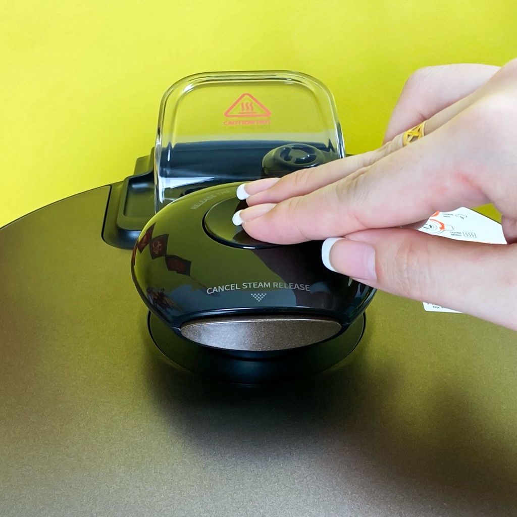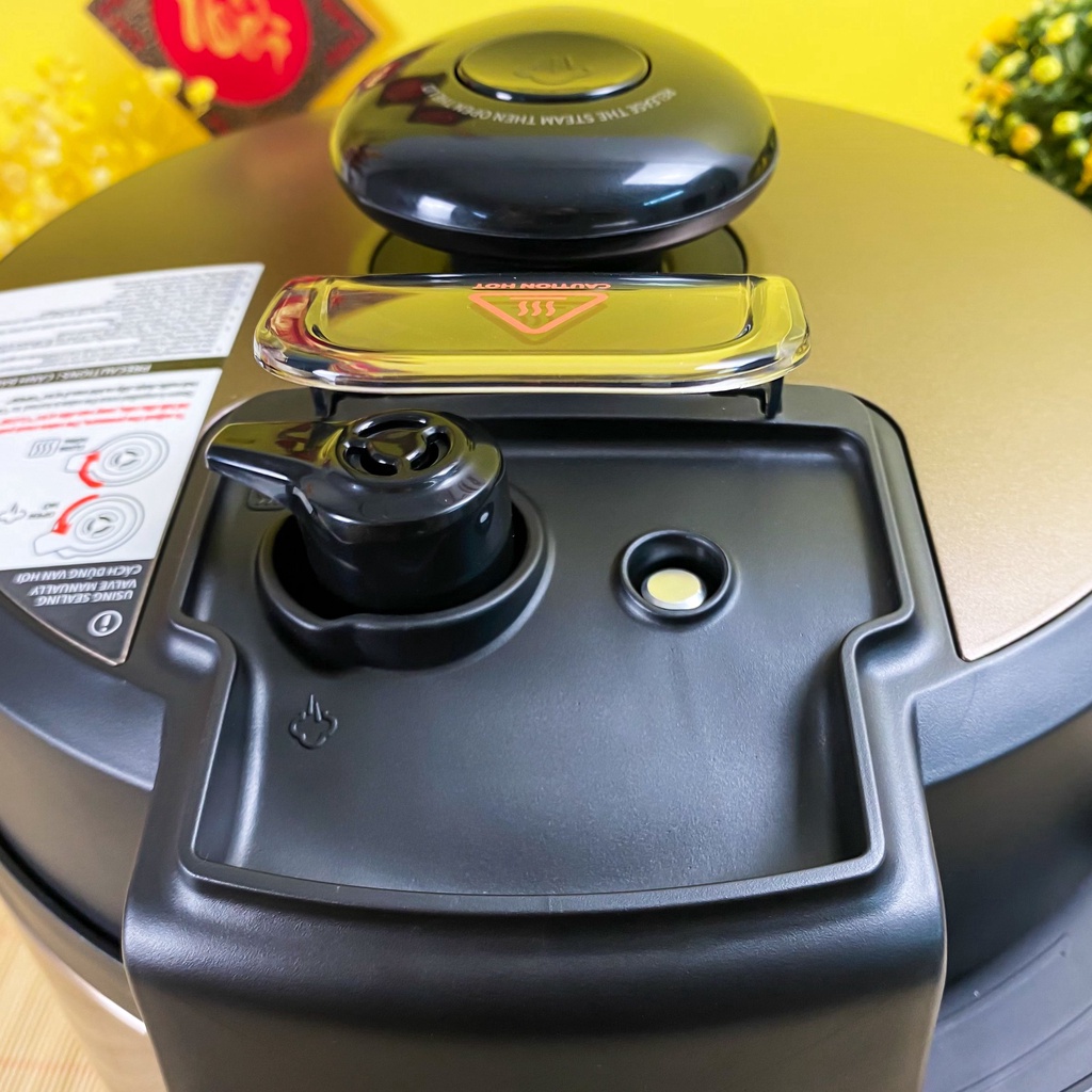 🍭 Lỗ thoát hơi có nắp đậy an toàn. Giảm áp suất bằng nút thả an toàn giúp giữ tay tránh khỏi hơi nước nóng.