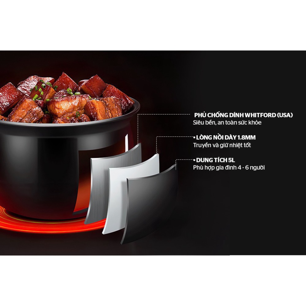 - Chế độ/Chức năng: Đa chức năng nấu nướng: hầm gân, súp, cháo, gà, canh, nấu cơm, giữ ấm thực phẩm…