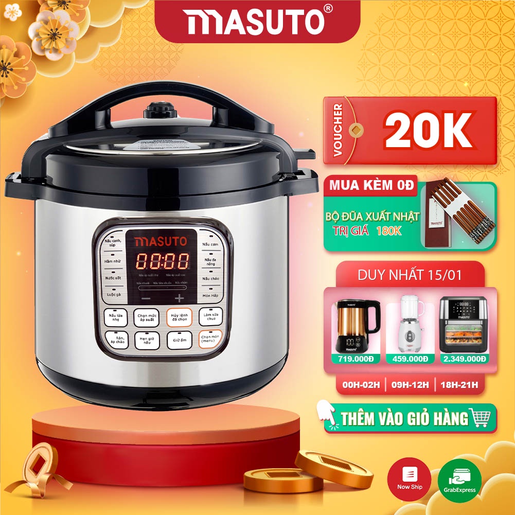 Nồi áp suất điện Masuto 6L van xả đôi tự động điều khiển cảm ứng 1 chạm phiên bản nâng cấp 2022 TẶNG VOUCHER 100K