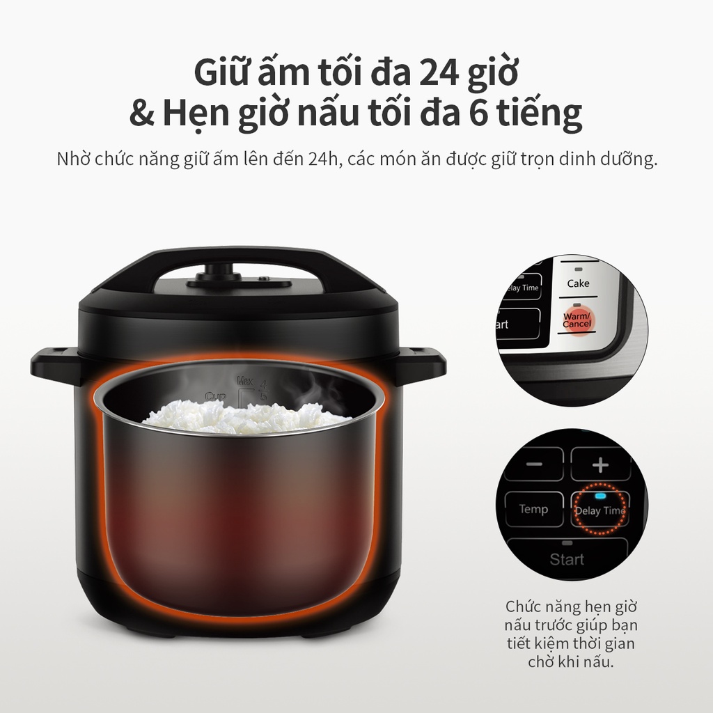 [Mã ELHADEV giảm 4% đơn 300K] Nồi áp suất điện tử Lock&Lock 6L - EJP666SLV