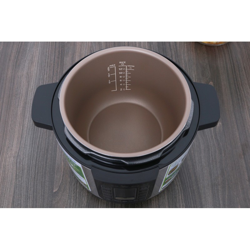 Đặc biệt, lòng nồi được làm bằng chất liệu hợp kim nhôm 5 lớp dày bền, chống móp méo tốt, có phủ chống dính bề mặt giúp bạn nấu ăn ngon hơn, tiện lợi vệ sinh. Cùng với bảng điều khiển nút nhấn điện tử có màn hình hiển thị hiện đại, kèm tiếng Việt dễ dùng, dễ thao tác cho mọi đối tượng người sử dụng.
