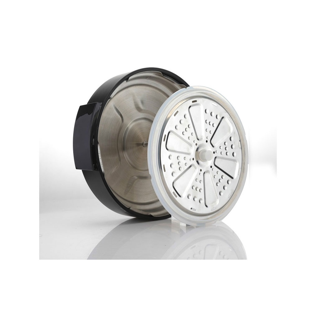 Nắp nồi được thiết kế dày dặn, cấu trúc vòng đệm khít, không làm thất thoát hơi nước, giúp giữ lại chất dinh dưỡng trong thức ăn cũng như bảo đảm an toàn trong quá trình nấu nướng (tránh tràn thực phẩm).