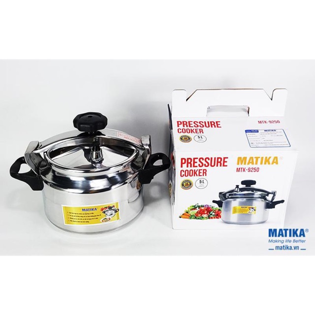 Nồi áp suất Matika MTK-9250 (5L) hợp kim nhôm cao cấp đa dạng chức năng nấu.Với chất liệu hợp kim nhôm cao cấp và van áp suất tháo mở đảm bảo an toàn, nồi áp suất Matika MTK-9250 dung tích 5L sẽ là sản phẩm không thể thiếu giúp chế biến các món hầm, ninh siêu dễ dàng và tiết kiệm thời gian.