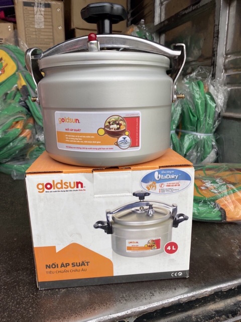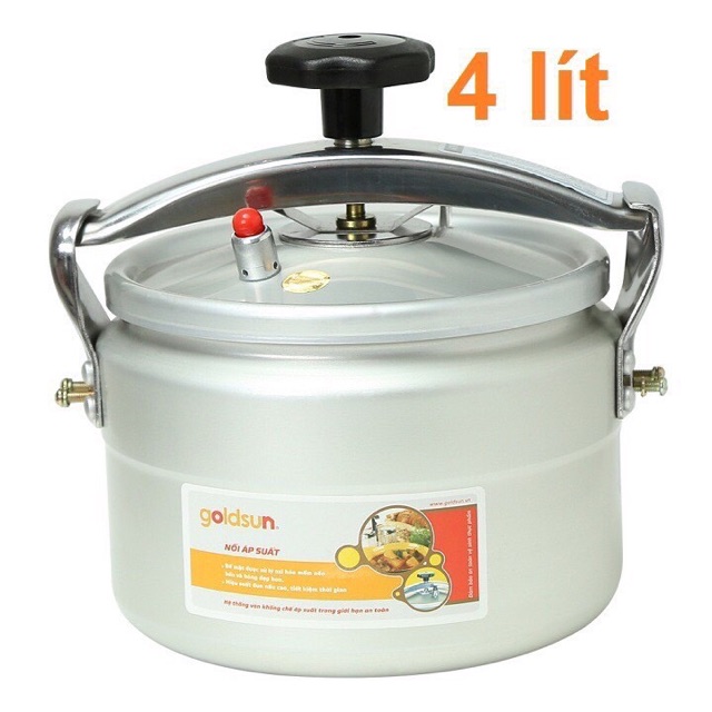 Nồi áp suất Goldsun 4 lítGiờ đây các bà nội trợ không phải lo lắng về việc ninh hầm thức ăn bởi thời gian ninh nấu quá lâu nữa vì đã có nồi áp suất nhôm