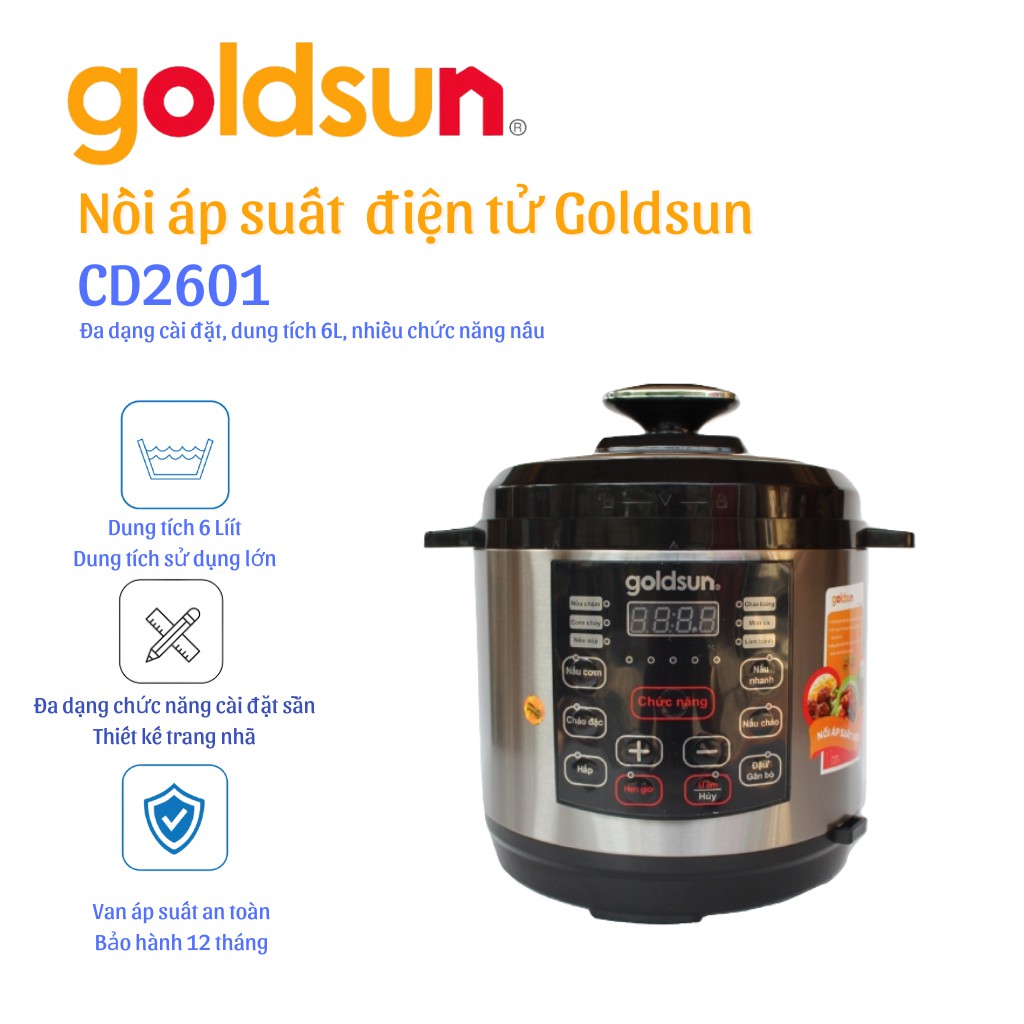 Thiết Bị Điện Gia Dụng > Đồ gia dụng nhà bếp > Nồi áp suất || Nồi áp suất Goldsun CD2601 6L Điện tử- Hàng chính hãngCòn hàng