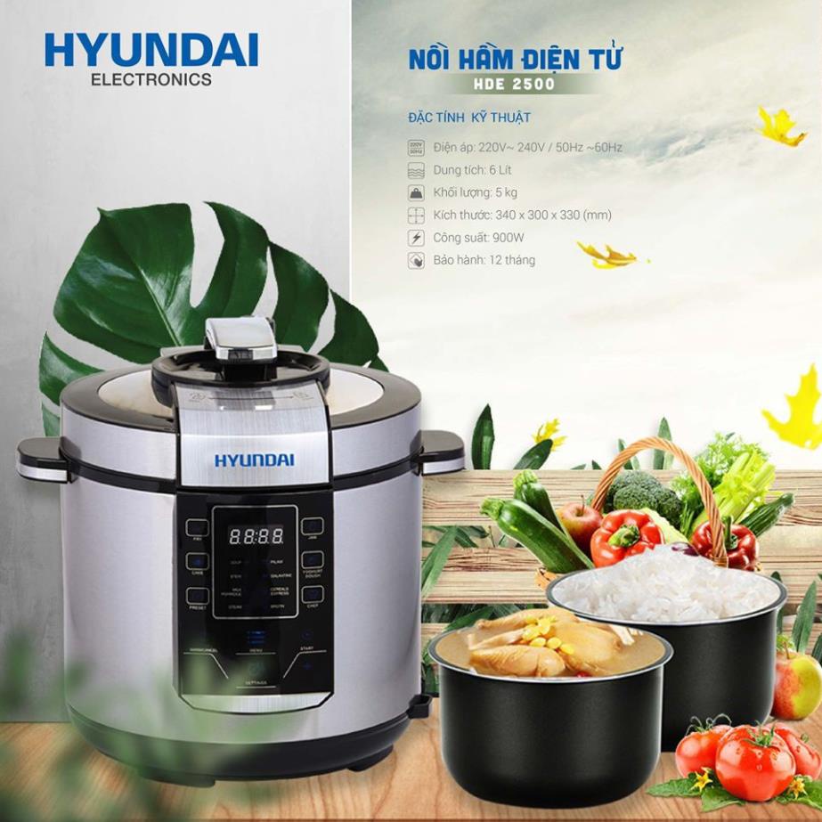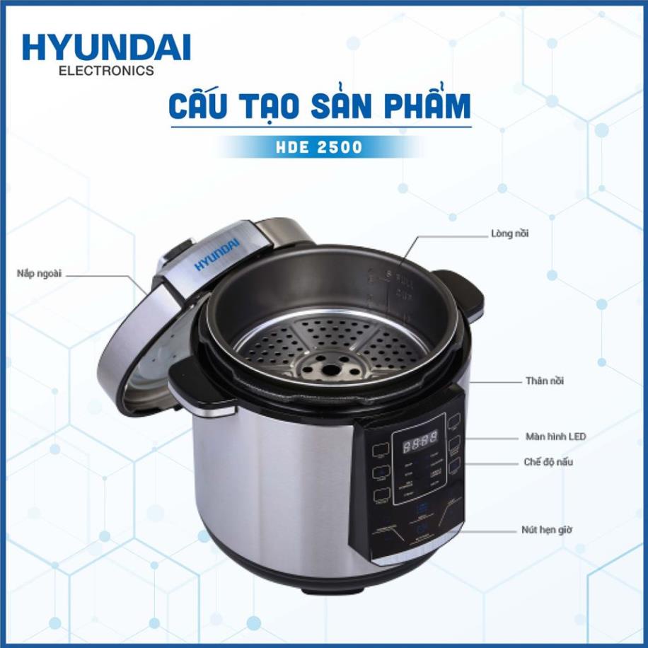 Nồi Áp Suât Huyndai, Nồi Áp Suất Điện Tử Dung Tích 6 LÍT An Toàn và Tiết Kiệm Thời Gian. bảo hành 12 tháng. HDE 2500S