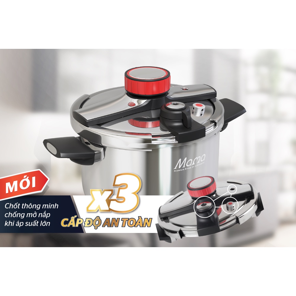 ĐẶC ĐIỂM NỔI BẬT Nồi áp suất inox 304 SUNHOUSE MAMA 6 Lít SHG9906M1 (Dùng mọi loại bếp)Chất liệu inox 304 cao cấp dày gấp 2 lần, chống oxy hóa, bền sáng với thời gian